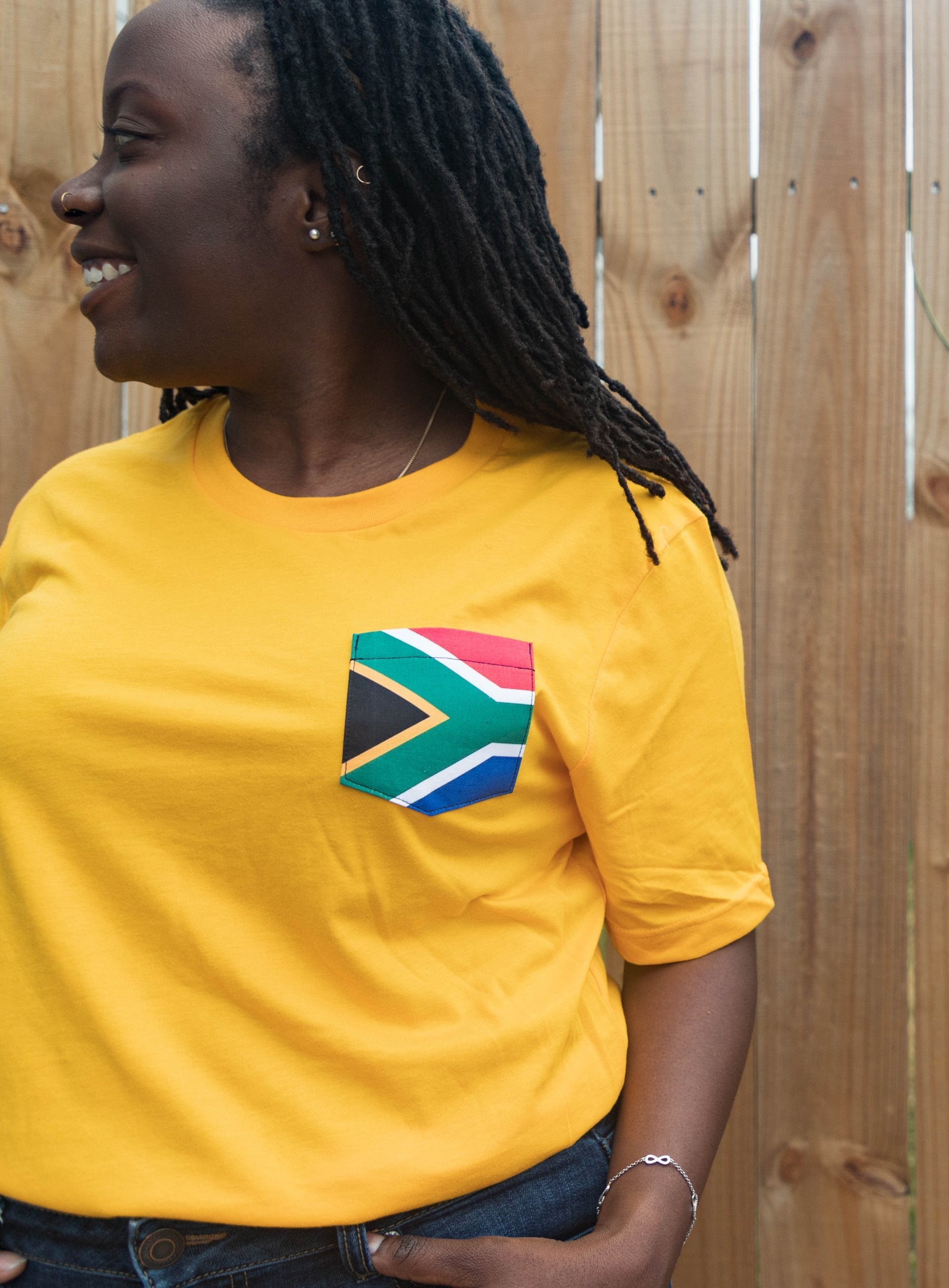 Our unisex South Africa flag pocket tee allows you to uniquely express who you are and what you care about. It is comfortably soft, relaxed, and breathable, allowing you to be bold and confident while being your authentic self. Each pocket is handmade to order.